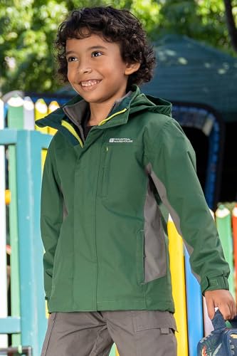 Mountain Warehouse Cannonball Kids 3 in 1 Waterproof Jacket – Breathable Triclimate Rain Jacket, Taped Seams Kids Coat, Detachable Hood – Kids Coat for Walking Dark Khaki (01) Kids Size 2-3 Years