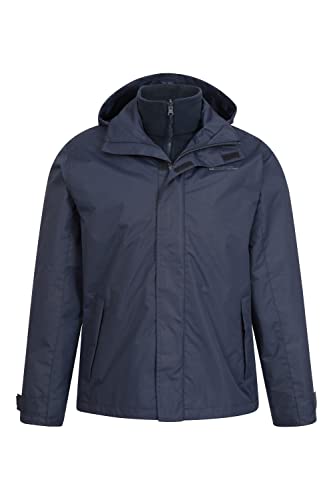 Mountain Warehouse Fell Mens 3 in 1 Water Resistant Jacket – Adjustable Coat with Packaway Hood, Detachable Inner Fleece & Many Pockets – For Hiking & Outdoors Navy XL