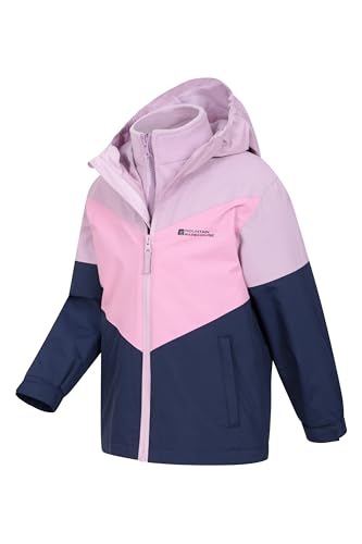 Mountain Warehouse Lightning 3 in 1 Kids Waterproof Jacket – Taped Seams Triclimate Jacket, Detachable Hood, Inner Fleece Kids Coat – For Spring Summer, Walking Dark Blue Teen Size 13 Years