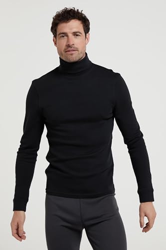 Mountain Warehouse Meribel Mens Thermal Baselayer Top – Combed Cotton Sweater, Roll Neck Jumper, Breathable, Quick Drying & Fitted Sleeves – for Everyday Use Black XL