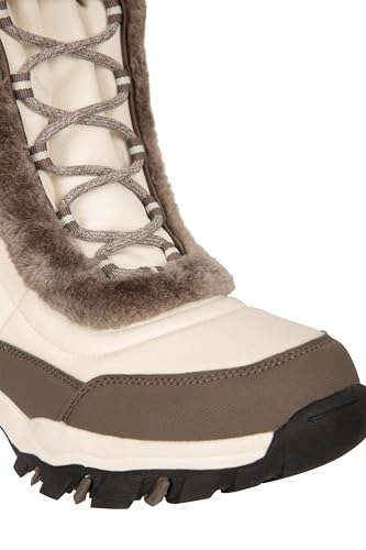 Mountain Warehouse Ohio Womens Snow Boots – Snow Proof Ladies Faux Fur Shoes, Thermal Tested -20 °C, IsoTherm – Winter Skiing, Winter Sports, Walking Beige Adult Shoe Size 4