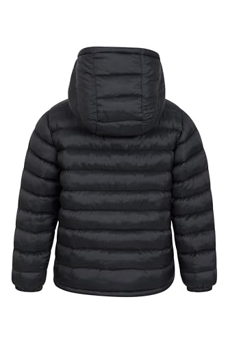Mountain Warehouse Seasons Fur-Lined Kids Padded Jacket – Lightweight, Warm & Water-resistant Puffer Coat, Boys & Girls – For Autumn Winter, School & Outdoors Black Kids Size 9-10 Years