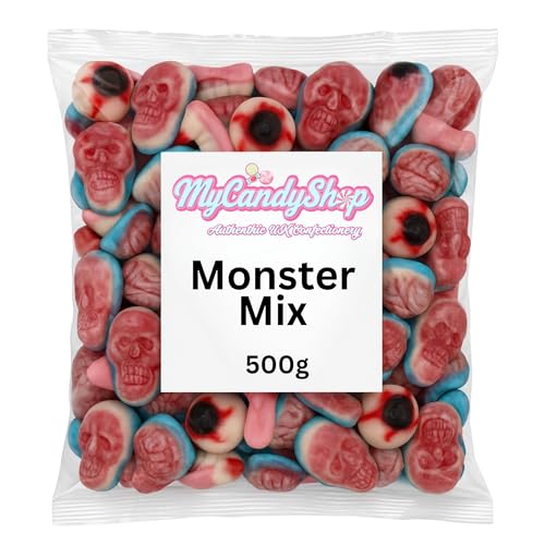 MyCandyShop Halloween Jelly Sweets 500g – Monster Mix – Spooky Trick or Treat Candy with Jelly Brains, Skulls, Eyeballs, Teeth & More – Random Assorted Halloween Sweets Selection for Parties
