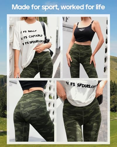 Natural Feelings Workout Women's Leggings Yoga Pants High Waist Gym Leggings with Pockets Women, M, ArmyGreen Camo