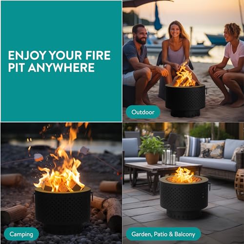- Smokeless Fire Pit: Enjoy cosy evenings by the fire without the smoke with our specially designed fire pits for garden. The double-wall design and bottom vent holes allow for maximum airflow, ensuring clean burning and minimising smoke.