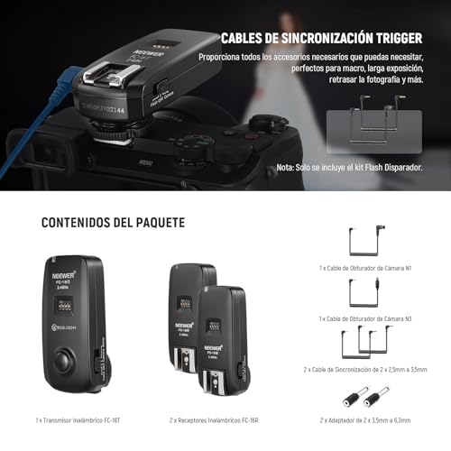 - 【Sync Cables Included】 For tool free setup, our flash trigger kit comes with N1 and N3 camera shutter cables, two 2.5mm to 3.5mm sync cables and two 3.5mm to 6.3mm adapters, providing all the necessary accessories you may need, perfect for macro, long exposure, delay photography and more