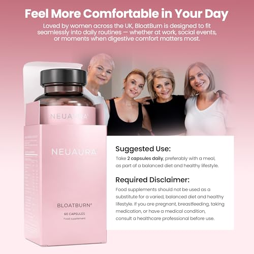 Neuaura Bloatburn Supplement – Premium Made in the UK – Bloating and Digestion Support, All-Natural Ingredients, 60 Capsules, 1 Month Supply for Menopause Wellness – Vegan & Gluten Free