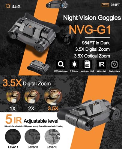 Night Vision Goggles Head Mounted 1X Optical Extra Wide FOV for Close Quarters Covert 940nm IR HD Digital NVG-G1 for Hunting