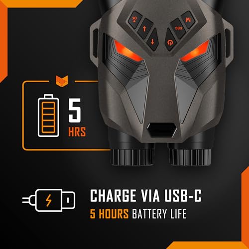 - Super Battery Life: The Ember's built-in 4000mAh rechargeable lithium battery provides over 5 hours of constant use on a single charge, and up to 16 hours when the IR LED is not activated. Use the included USB-C cable to plug your Nightfox Ember into a charger.