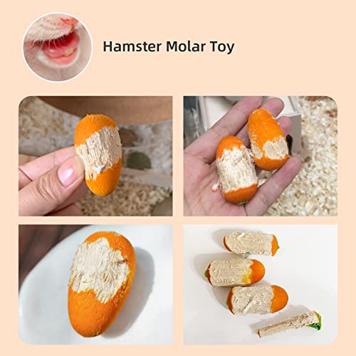 - [ Safe Material And Design ] Made of beech wood and paper, safe material is the best hamster decor toys for furry friends, keeping them from chewing on cages or other furniture, carrot shape design makes it better for moving and chewing, hamsters will hide it as a favourite plaything to break boredom and grinding teeth.