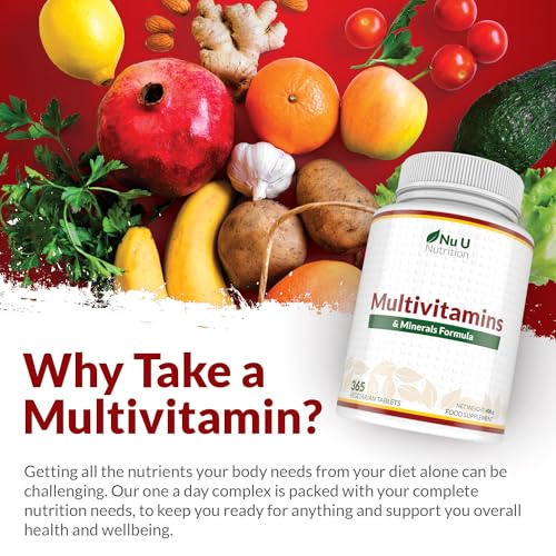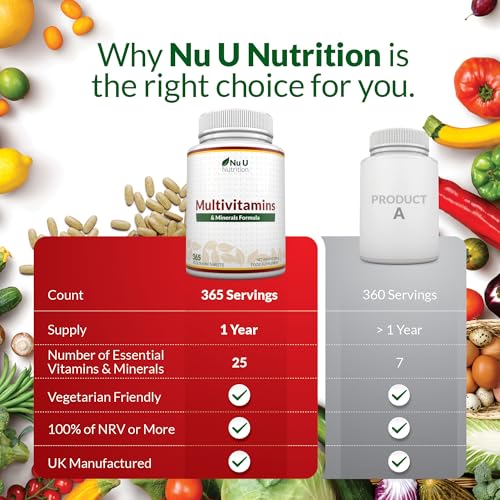 Nu U Nutrition – A-Z Multivitamin Tablets for Women & Men – 365 Tablets – 12 Month Supply – 25 High Strength Essential Nutrients Including Iron, Zinc, Magnesium, Vitamin B12, C & D3 – Made in the UK