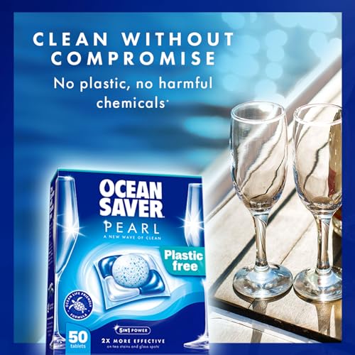 Introducing OceanSaver Pearl, your new go-to for a streak-free clean that makes dishwashing a breeze. Packed with 5-in-1 power, it tackles stubborn stains, cuts through grease, and prevents residue, leaving your dishes sparkling after every wash—even in hard water areas. It’s engineered to be twice as effective against tea stains and glass spots compared to traditional tablets.