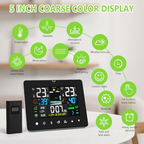 This model suits people who want reliable readings from several locations and prefer a clear central display. It is ideal for households monitoring comfort levels, gardeners tracking outdoor conditions, or anyone managing spaces where temperature and humidity matter. It is also well suited to users who value automatic time accuracy and additional daily information such as sunrise and sunset times.