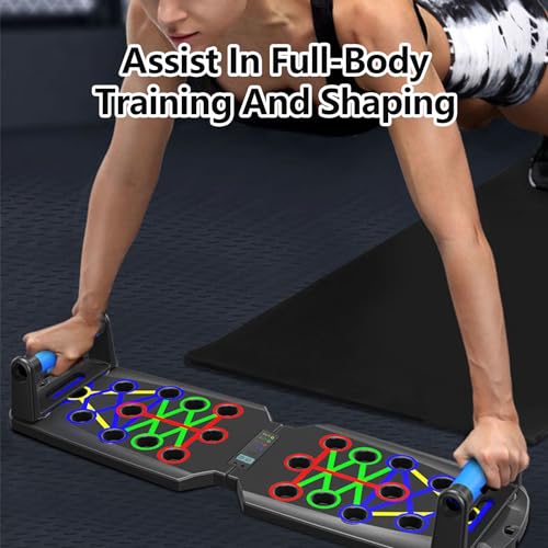 - 【Multifunctional Push Up Board】This multi-functional 26 in 1 system push up machine is color-coded for pectorals, abdominals, arms and latissimus dorsi (blue – chest, red – shoulders, green – triceps, yellow – back). Suitable for all types of push-ups.