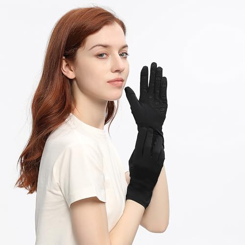 - ANTI-SLIP SILICONE PRINT DESIGN – Silicone print on palm and fingers add grip and dexterity to our sun gloves, make it perfect for driving and golfing. It’s durable, rub-free and no color run in the wash.