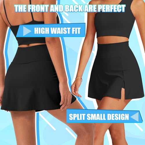 Okdance Sport Skorts for Women Ladies High Waist Hem Slit Activewear Skirts with Shorts for Tennis Golf Casual Wear (UK, Alpha, S, Regular, Regular, Black)