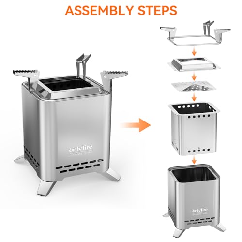Onlyfire 6.5" Square Tabletop Fire Pit, Smokeless Fire Pit with Pot Bracket & Carry Bag, Wood&Pellet Burning, Mini Portable Firepit for Outdoor Camping Tailgating Patio Backyard, Stainless Steel