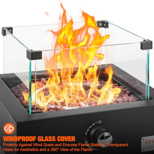 Onlyfire Tabletop Gas Fire Pit, Outdoor Gas Patio Heater with Lava Rocks & Glass Wind Guard, 6,74 kW Propane Fire Pit for Patio, Backyard and Garden, Bottom Mounted, Square