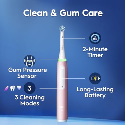 Oral-B iO3 Electric Toothbrushes Adults, 5 Toothbrush Heads, 3 Modes With Teeth Whitening, 2 Pin Plug, Pink