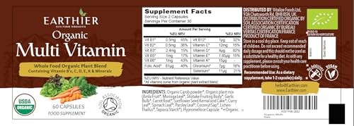 - Earthier's Organic Multi Vitamin Supplement with minerals Selenium and Chromium. Made from organic whole food is ideal for those who are looking for a supplement which is completely natural and true food state.