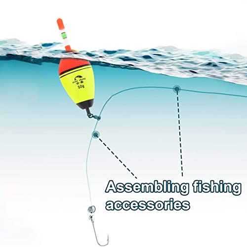 - 🐟 Sensitive Fishing Floats – These Floats have large buoyant, 5 buoyancy to choose: 15g 20g 30g 40g 50g. The float featured a 360 degree bottom rolling swivel, it allows the bobber to 360 degree spin in the water, keep the line in right depth. They work great as slip bobbers.