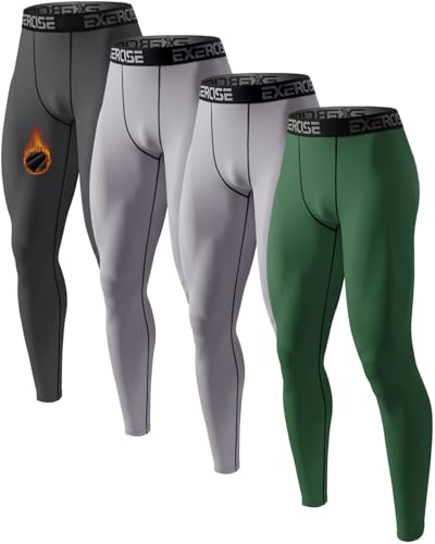 Orrfreer 4 Pack Men's Thermal Underwear Trousers Long Johns Fleece Lined Thermal Leggings Warm Compression Pants Base Layer Leggings for Ski Running Outdoors Charcoal/Grey/Grey/Dark Green XXL