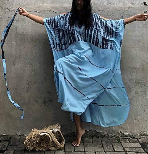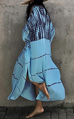 Orshoy Womens Beach Cover Up Dress V-Neck Kaftan Rayon Caftan Boho Swimsuit Swimwear Nighty Plus Size C-Grey Blue