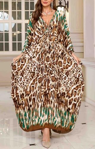 Orshoy Womens Casual Dress Long Beach Bikini Cover Ups Kaftan Swimwear Maxi Kimono Tunic Bohe Loungewear Robes Big Leopard