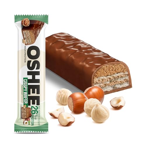 OSHEE Crispy Protein Bar with Hazelnuts 37g (Pack of 12), Crunchy Protein Snack for Energy & Fitness