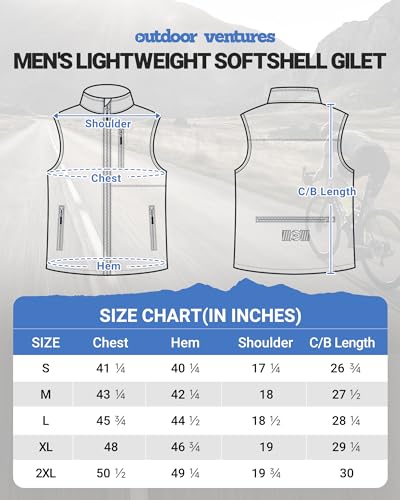 Outdoor Ventures Mens Softshell Gilet Waterproof Windproof Vests Sleeveless Jacket Outerwear with Zip Pockets for Cycling, Hiking, Safari, Golf Medium Blue M