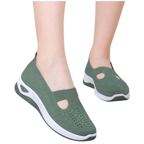 Outlet Clearance Slip On Trainers Women Wide Fit Wedge Trainers Breathable Hollow Mesh Orthopedic Sneakers Lightweight Low Top Arch Support Shoes Nurses Shoes for Women Green 6