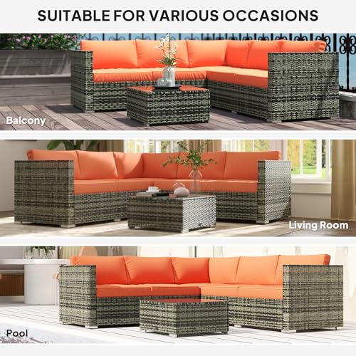 Place the two loveseats and corner chair where the layout feels open and easy to move around. Use the coffee table as the centre point so drinks and essentials stay within easy reach. Wash the removable cushion covers as needed to help the set stay looking fresh. Measure your patio, balcony or conservatory before assembly so the layout fits naturally. Choose a position where the bright orange finish can lift the space rather than compete with it.