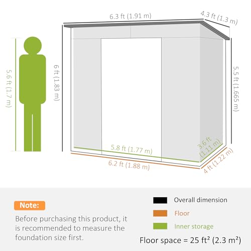 Outsunny 6.3 x 4.3FT Garden Shed, Galvanised Metal Shed, Easy to Assemble, Outdoor Tool Storage Shed with Pent Roof, Lockable Door and 2 Vents, Grey