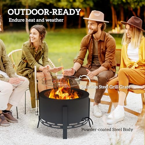 - Stainless steel grill grate: Easy-to-clean stainless steel grate and steel frame makes outdoor fire pit the lasting reliability and high heat resistance