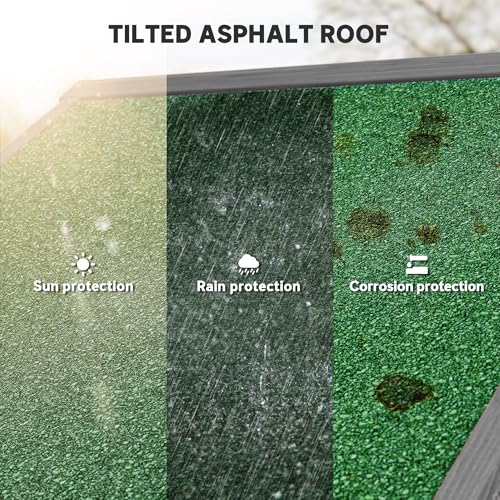 - PROTECT YOUR TOOLS: The tilted asphalt roof of this garden storage cupboard protects your shed from wind and rain while keeping the shed from filling with water. A tough and solid piece, this garden storage cupboard is with a protective paint coat for extra protection.