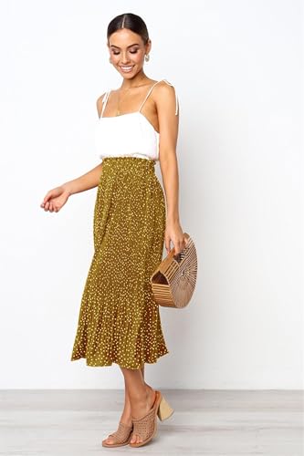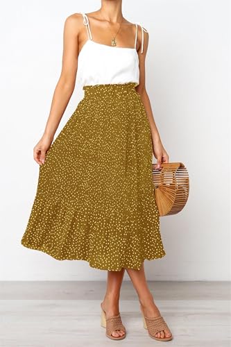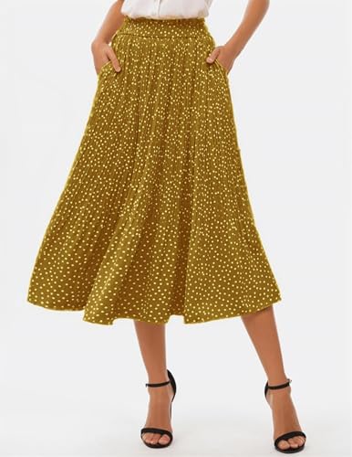 Oyamiki High Waist Long Skirts for Women UK Swing Flowy Pleated Polka Dot Summer Maxi Skirts Yellow L
