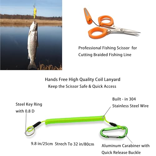PAFASON 4.5" Stainless Steel Serrated Edge Braided Line Fishing Scissor with Safety Cover,Lanyard,High Precision Tips, Ergonomic Handle