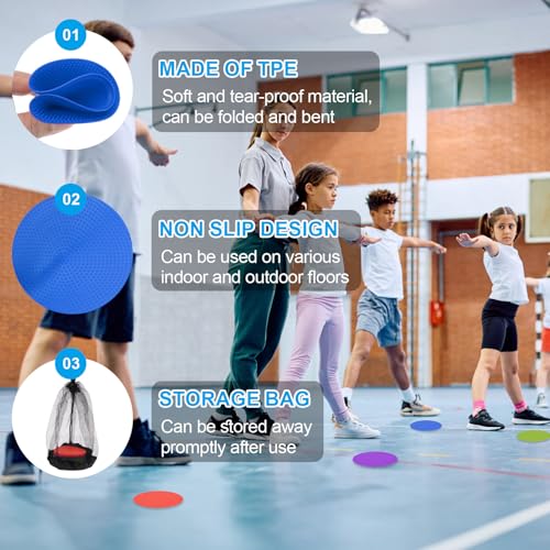 - Advantage: 1. The flat agility cone is made of TPE material, which is soft, tear-proof, and waterproof, and has a relatively long service life. There is an anti-slip point design on the back, which can be used on various indoor and outdoor floors. 2. All floor points are brightly colored for high visibility. The bright colors can enhance the visual effect, making them great equipment for training. We also provide these floor points with a storage bag, so they can be stored away promptly