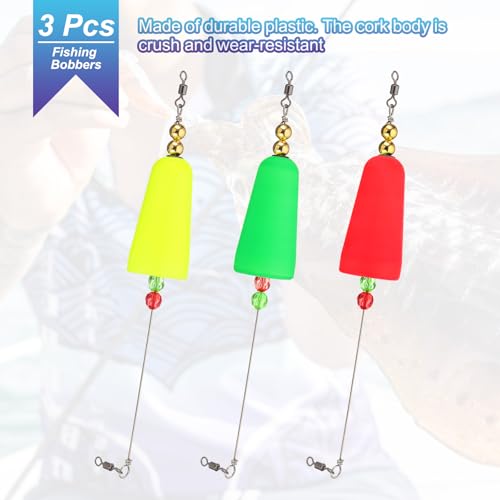 PATIKIL Fishing Floats Rigs 10 Inch, 3 Pack Oval Fishing Bobbers Popping Corks Float Weighted Bobbers Fishing Tackle with Copper Beads for Saltwater Freshwater Fishing, Yellow/Red/Green
