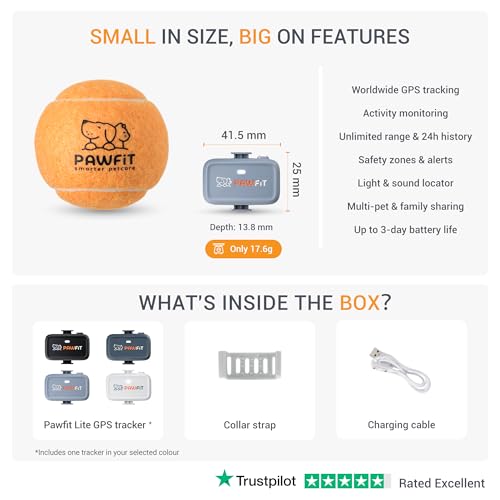 - Built-In LED Light & Escape Alert: Should your pet venture beyond your chosen virtual safe zone, you will be notified in seconds so you can find them faster. The bright LED light featured on the Pawfit Lite tracker helps you spot your dog even in low-light environments.