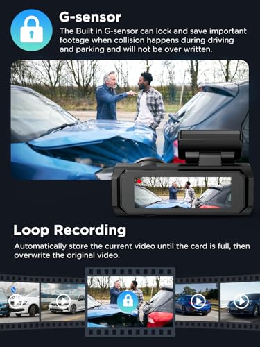 - 🏆G-Sensor and Auto-Lock🏆: This dashcam's G-Sensor features three adjustable sensitivities, allowing it to detect varying degrees of impact. Low sensitivity is sufficient for everyday use. When the G-Sensor detects an impact, the dashcam automatically locks the recording and saves it to the memory card, preventing it from being overwritten. This provides crucial evidence for insurance claims or legal proceedings in the event of a collision.