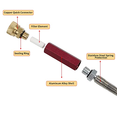 - OIL-WATER SEPARATOR:The length of PCP hose is 50cm, with oil-water separator. To filter the oil, moisture and impurities when your fill your pcp bottle