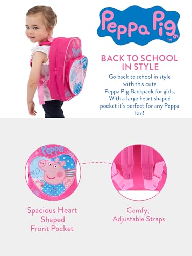 - Heart Shaped Front Pocket: Designed with a heart-shaped front pocket and a secure zipped main compartment, this backpack for school keeps your child's belongings safe and sound while reflecting Peppa's endearing style. The heart shaped pocket is a sweet touch for treasures and treats!