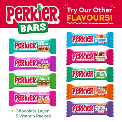 Perkier Cocoa Orange Bars (18 Bars), Vegan, Gluten Free, Protein, Lower Sugar, Office Snacks, Healthy Snacks for Adults, Low Calorie, Halal, Breakfast Bar, High Fibre, Gut Health, Multipack