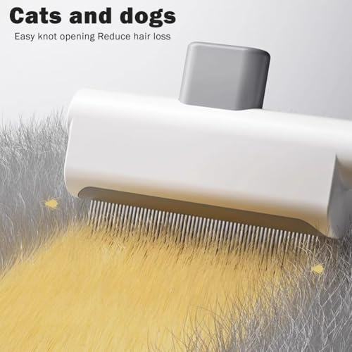 - One-Click Self-Cleaning: This flea comb for cats is uniquely one-click cleaning button on the top of the cat brush, when you need to clean animal hair on your comb, press the button and the hair on the brush will fall off easily, greatly improving the efficiency of hair removal, no more wasting time to clean the hair on the brush.