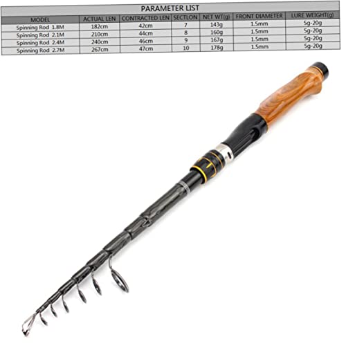 Pineeseatile Carbon Spinning Rod Carbon Fiber Portable Telescopic Fishing Pole 2.1m,Telescopic Fishing Rod