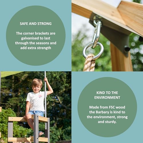 Plum Play Kids Outdoor Wooden Barbary Double Swing Slide and Climbing Frame with Ladder and Sunshade – Suitable from 3 Years Plus Max User 50kg per Accessory