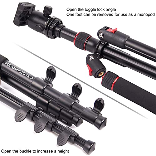 POLAM-FOTO 168.2cm/66.22" Camera Tripod, Made of Aluminum Alloy, Equipped with a Ball Head, Monopod Height of 68.89"/175cm, Comes with a Carrying Bag, Compatible with DSLR Cameras