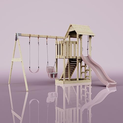 PolarPlay Balcony Tower Kids Wooden Climbing Frame – Swing Hagen Rose