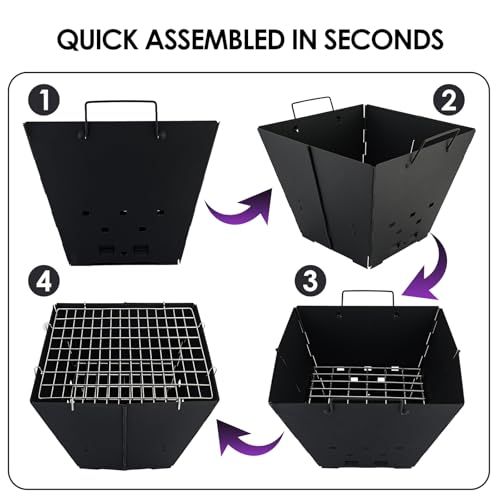 - Quick Assembly – Easy to assemble, no screws, it's easy for you to assemble this fire pit within seconds. A simplified assembling structure saves you a large amount of time and energy.